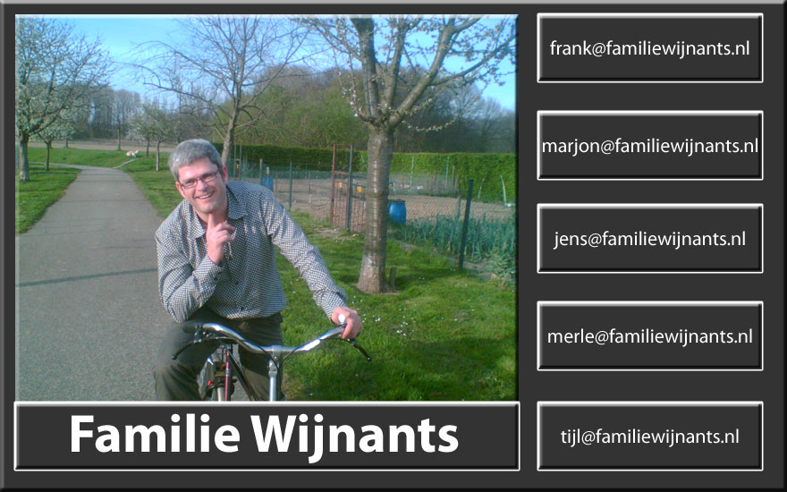 E-mail Frank klik hier.... E-mail Marjon klik hier..... E-mail Jens klik hier..... E-mail Merle klik hier..... E-mail Tijl klik hier.....